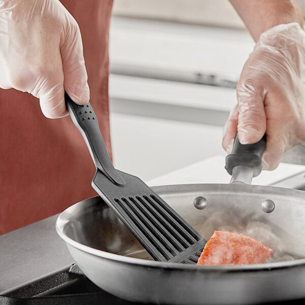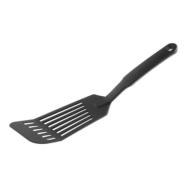 Use this Choice 12" black heat-resistant nylon slotted fish turner to easily and safely cook and serve dishes to your customers!