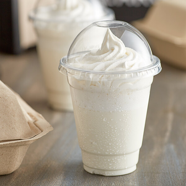 From milkshakes and iced coffee, to smoothies and slushies, this disposable plastic cup will create an eye-catching presentation for any refreshment. A must-have for any kiosk, concession stand, fast food restaurant, or to-go establishment, this PET plastic cold cup with dome lid with no hole is the perfect addition to your venue.