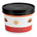 Engage your customers by offering to-go soups, stews, chilis, and more in this paper hot food cup. Featuring colorful imagery, this container serves as an advertisement for hungry guests passing through your convenience store, cafe, or grocery store. While the bright, colorful graphics are sure to draw attention, the sleek black lid provides a striking contrast to the container itself, too.