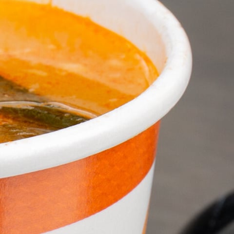 Made from double poly-coated paperboard, this container and lid combo is durable and moisture resistant. Use it for serving anything from light chicken noodle soup to thick, hearty stews. It ensures the combined rigidity and reliability you need in a take-out paper hot food cup and lid combo.