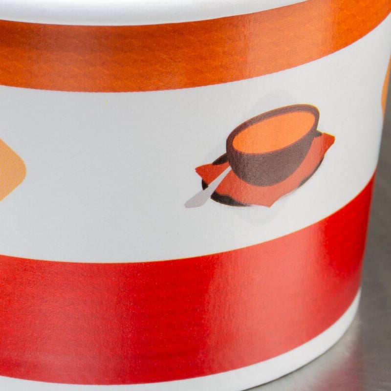 Use this container to serve your signature soups and stews, or reserve it for your most popular hot side dishes and salads. Its versatile 12 oz. size makes it great for individual servings, while the classic round shape makes it easy to hold on the go. Plus, the colorful graphics ensure it makes a statement, drawing customers in to see what's being served with such style.