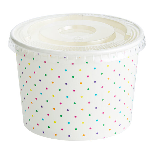 Choice 12 oz. Polka Dot Paper Frozen Yogurt / Food Cup with Flat Lid - 50/Case