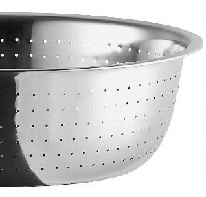 This colander boasts a bright mirror finish that will remain shiny for years to come. Its wide body makes it effortless to transfer food into and out of this colander, decreasing frustration and increasing efficiency.