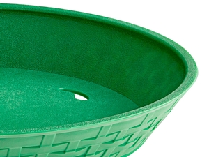 Built in drain holes in the base of this sturdy plastic basket aid in post-wash drying, ensuring that water doesn't pool in the basket. This will extend the life of the platter for a long lasting addition to your kitchen.