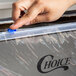 This blade allows you to quickly and easily cut film or foil at any desired length, reducing waste from snarled rolls while also eliminating cross contamination risks that come with using unsanitary cardboard cutter boxes. This PVC safety cutter with a hidden blade has stopping points on both sides, minimizing blade exposure and reducing the risk of injury when slicing. This product combines quality and safety, ensuring the safest working environment possible for your employees.