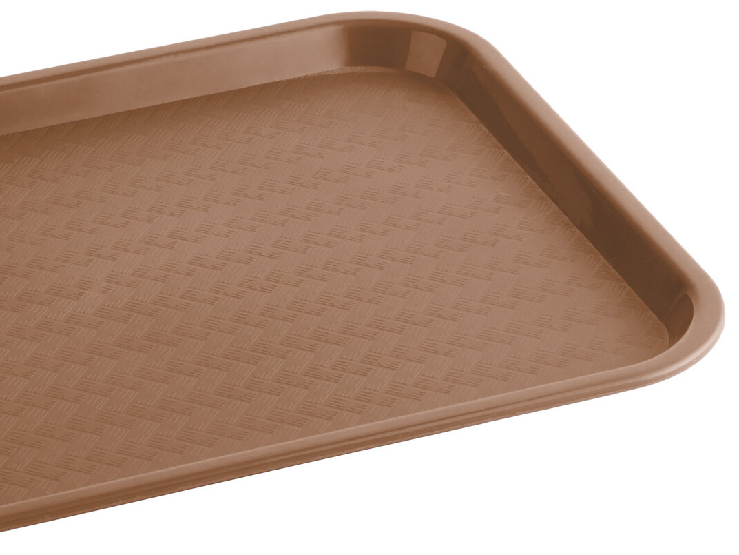 With an economical, lightweight plastic construction, this durable tray is perfect for everyday use in casual dining areas and self-service establishments. Its large surface area allows customers to hold a plate of food, sides, utensils, and drinks all on one convenient tray, making it effortless to carry full meals from check-out lines to tables.