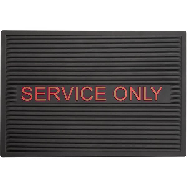 Designed to aid in distinguishing reserved areas for your wait staff, this unique bar mat from Choice serves as an ideal addition to your bar area. Use this rubber bar spill mat to reserve space at the bar for your servers for faster, more efficient table service. The words "Service Only," enlarged and written in bright red, contrast with the black mat to clearly distinguish the area as reserved for your wait staff. With this mat, bartenders have a defined place to put drinks while they wait for servers to bring them to your guests' tables.