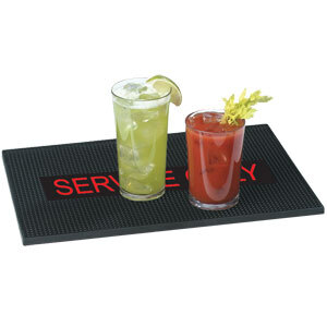 Use this rubber bar spill mat to reserve space at the bar for your servers for faster, more efficient table service. The enlarged words "Service Only" in bright red contrast the black mat to clearly distinguish the area as reserved for your wait staff. With this mat, bartenders have a defined place to put drinks while they wait for servers to bring them to your guests' table.