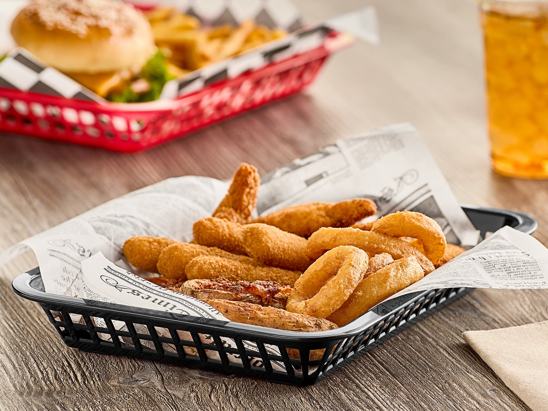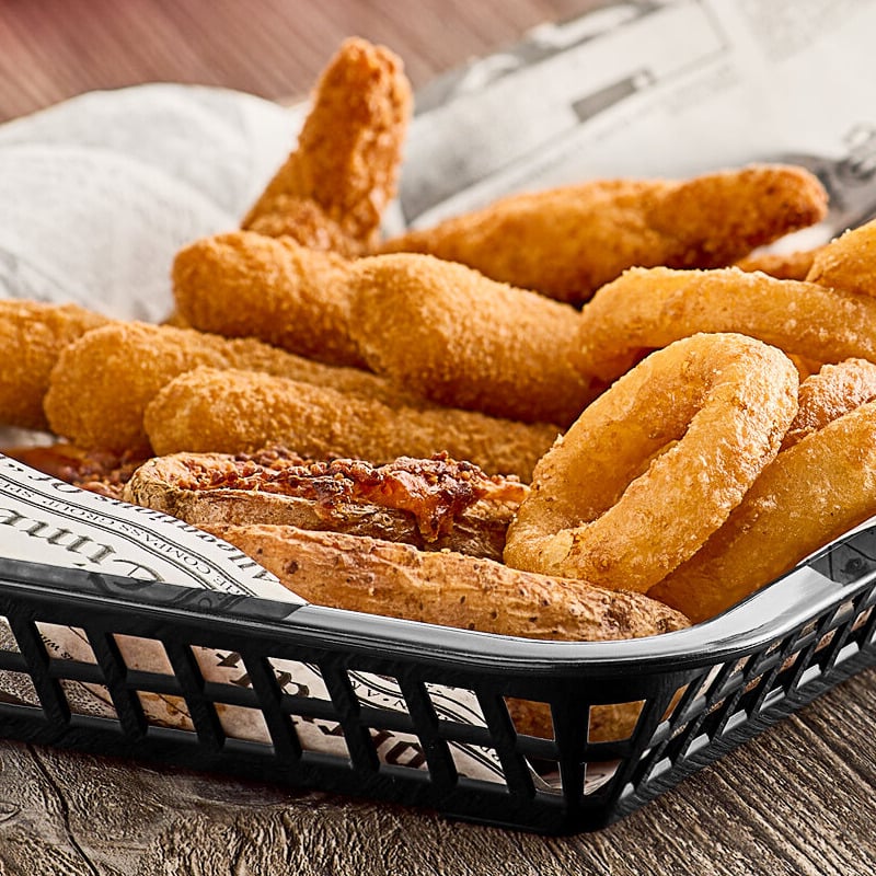 Perfect for any casual dining establishment, this food basket is a unique alternative to traditional plates. From sports bars and family-style restaurants to pool cabanas and other outdoor dining, it complements any inviting and fun atmosphere. Plus, thanks to its lightweight design, transporting full meals is easier than ever. Use it to deliver your guests' fried food, wings, sandwiches, entrees, or appetizers!