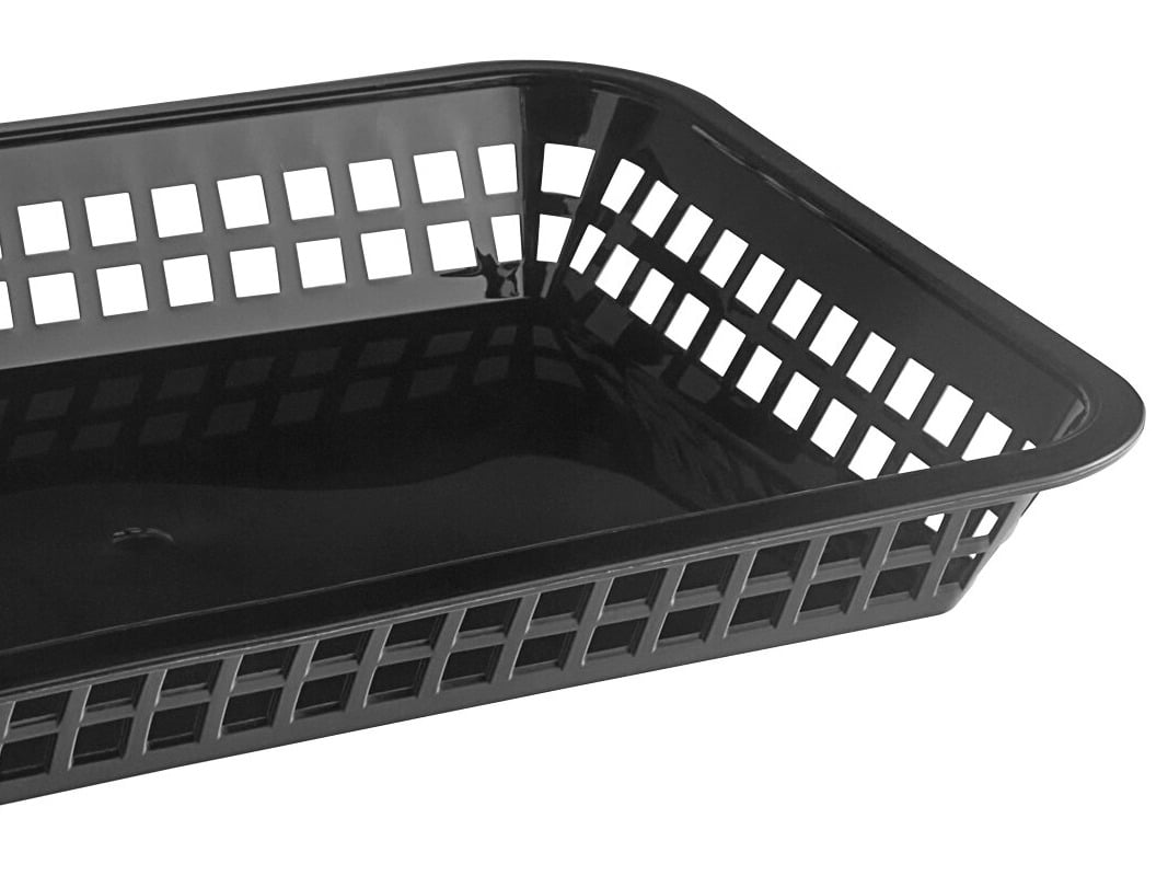 While this is a good basket and it holds up well to daily use, we found that it was too big for the portions we serve. Employees were putting in more food than they should have to fill the space, which leads to lost profits. We purchased one of the smaller oval baskets to replace these rectangles baskets.