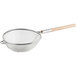 This strainer has a heavy wooden handle and a hanging pan hook for convenient storage. Achieve better texture in your finished foods with the help of this 13 3/4" stainless steel heavy-duty strainer!