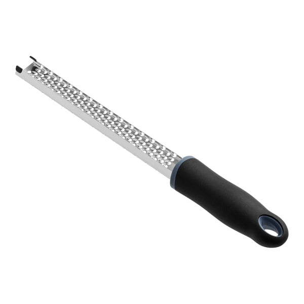 This grater features a corrosion-resistant, etched 18/8 stainless steel blade that's sure to provide years of reliable use. Its black, soft grip handle ensures employee comfort even after long use. This is absolutely perfect for use in your bakery or restaurant.