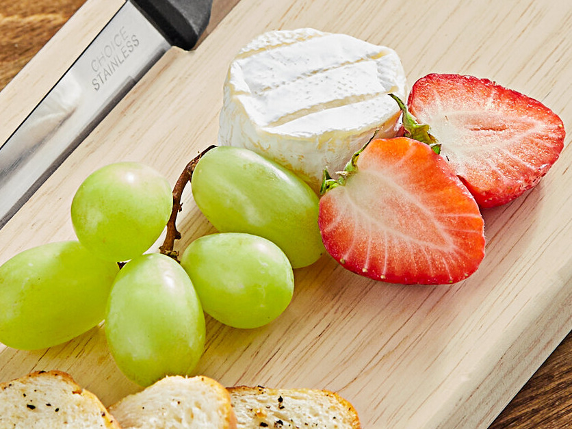 This cutting board is ideal for displaying fresh fruit, meats, exotic cheeses, bread, and even desserts.