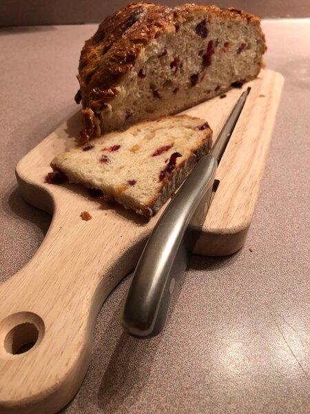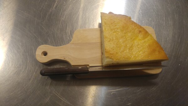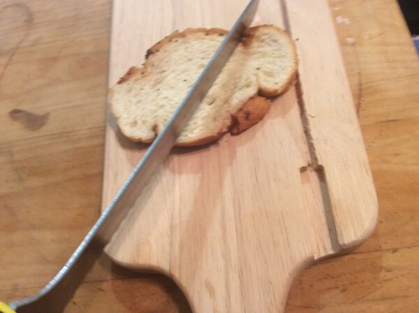 I use this cutting board specifically for bread and with a nice bread knife. It's a really nice cutting board that will serve us well for a long time.
