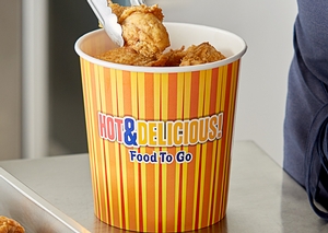 We used these hot food buckets with lids for not only our famous chicken chunks but we were able to use them for large to go appetizers. Kept food warm