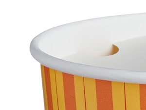 This bucket is made of durable, food-grade polyethylene-coated cup paper that resists oil and keeps grease off of hands and countertops.