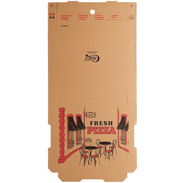 This heavy-duty construction can handle a heavy pizza piled high with several toppings. Featuring an ingredient checklist on the side, this 14" x 14" box enables you to easily mark the pizza's toppings and make customer pick-up a breeze!