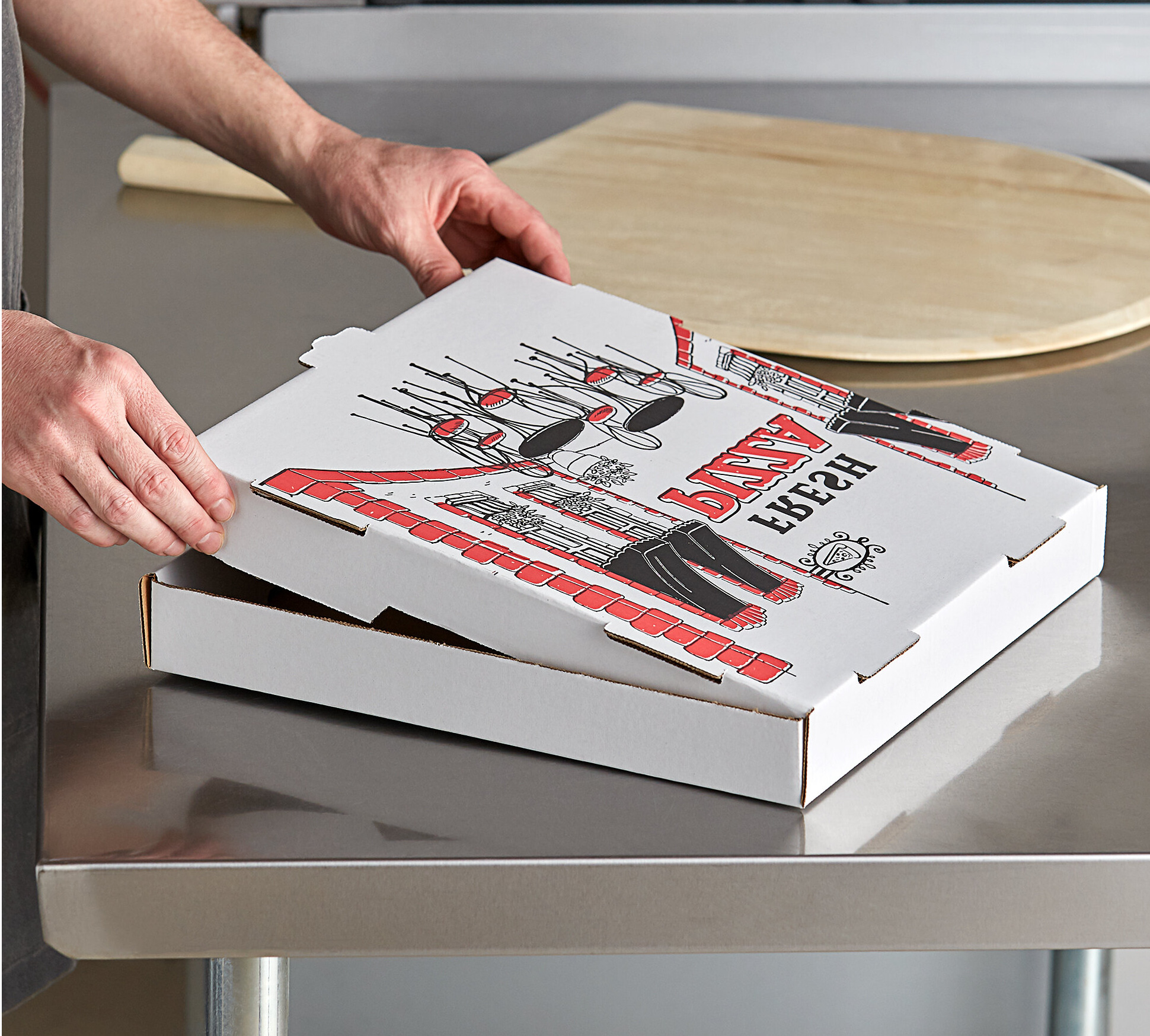 Use these for my pizzeria and love the quality of the corrugated box. Keeps pizzas hotter than traditional pizza boxes. Price is reasonable and shipping is quick.