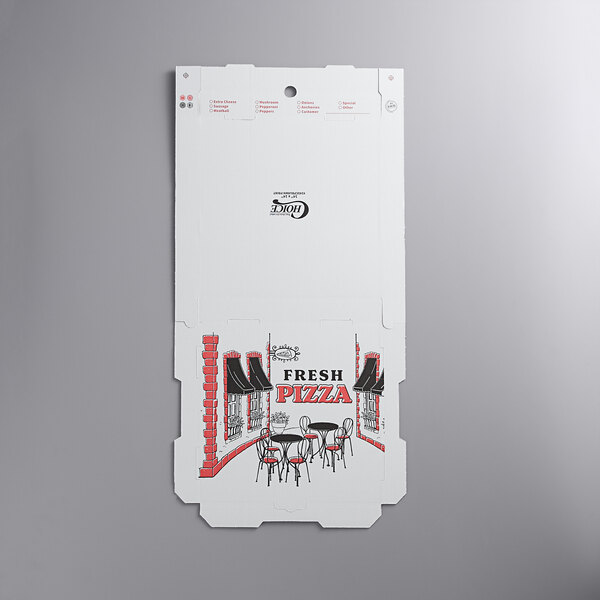Once your guests have finished eating, this convenient printed box is recyclable for fast clean up. Plus, it features a convenient ingredient check list on the side, enabling you to mark each pizza's toppings for fast order identification at your pizza parlor, Italian restaurant, or convenience store.