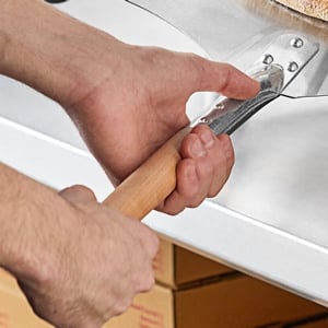 Constructed with durable 3003 aluminum, the blade is stronger than other aluminum blade peels, holds up through prolonged usage, and doesn't need to be seasoned, making it lower maintenance compared to other materials. Additionally, the blade is easy to clean and won't absorb food particles or unwanted odors, so you can rest assured the peel is sanitary! If using as a launching peel, we recommend to sprinkle a light dusting of flour or corn meal over the peel to prevent the dough from sticking to your peel for a seamless transition.