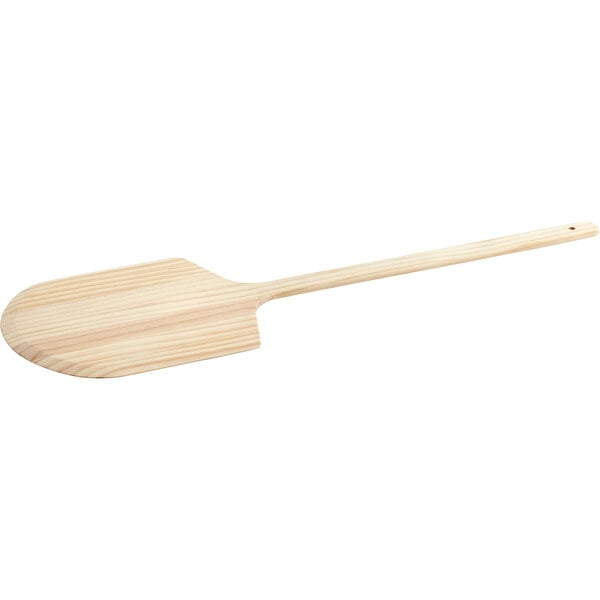 Add some rustic charm to your bustling pizzeria with this Choice 14" x 15 5/8" wooden tapered pizza peel with 20" handle!