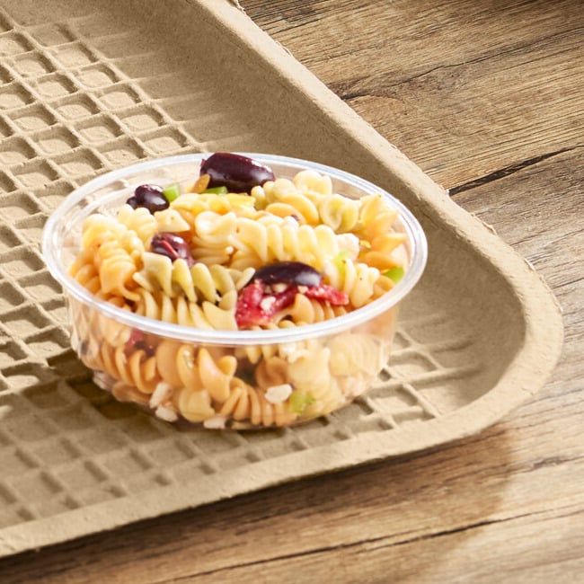 This tray is made from strong molded fiber and 100% recycled material! It's a great way to promote your green values to customers in comparison to foam or plastic alternatives. The strong design has a molded feel and texture that offers an easy grip.