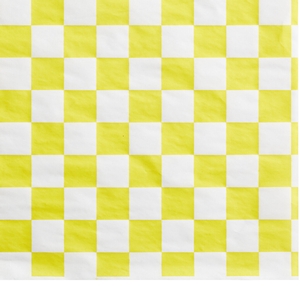 Featuring a bright yellow check design, this Choice 15" x 15" yellow check deli sandwich wrap paper brings a fun and exciting pattern that enhances your venue's personality. Use it to wrap sandwiches, burgers, hot dogs, and bratwursts, or line serving baskets with this playful paper.
