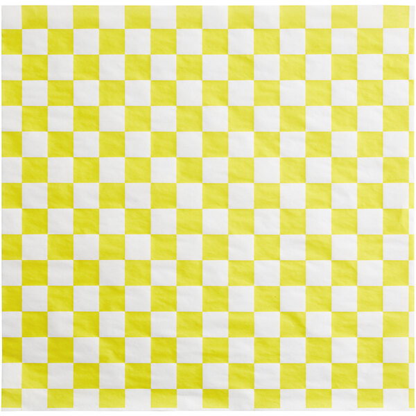 Give your take-out snacks or combo platters an attention-grabbing kick of color with this Choice 15" x 15" yellow check deli sandwich wrap paper.