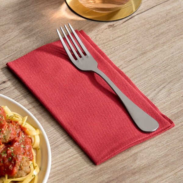 Thanks to this Choice 15" x 17" burgundy airlaid linen-feel 1/8 fold dinner napkin, you can now provide your guests with a high-end disposable napkin at your restaurant, bar, lounge, or catered event! This napkin is made of high-quality, airlaid paper with a softer, fluffier feel than DRC paper. Plus, the upscale look and burgundy color add style and sophistication to any table setting.