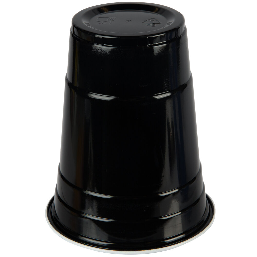 Boasting a 16 oz. capacity, the cup is just the right size for serving your guests ice-cold draft beer, signature punch, or soda. It's made of lightweight, durable polystyrene plastic with a bold black color and classic design, making it perfect for everyday use.