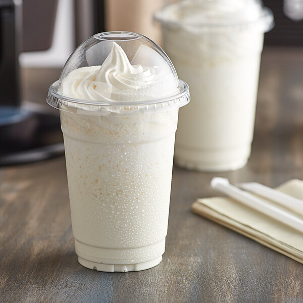 From milkshakes and iced coffee, to smoothies and slushies, this disposable plastic cup will create an eye-catching presentation for any refreshment. A must-have for any kiosk, concession stand, fast food restaurant, or to-go establishment, this PET plastic cold cup with dome lid with no hole is the perfect addition to your venue.