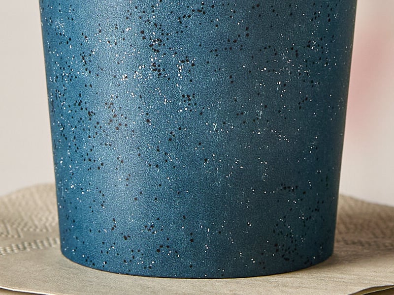 Both versatile and economical, this Choice hot coffee cup is the perfect beverage solution for your cafe, coffee shop, kiosk, concession stand, or convenience store. It features a visually appealing blue speckled design that adds a touch of fun to your drink presentation and has a space-saving construction, allowing it to be placed in a convenient cup dispenser for compact storage and easy accessibility.