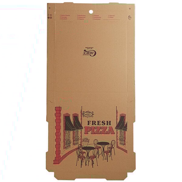 This heavy-duty construction can handle a heavy pizza piled high with several toppings. Featuring an ingredient checklist on the side, this 16" x 16" box enables you to easily mark the pizza's toppings and make customer pick-up a breeze!