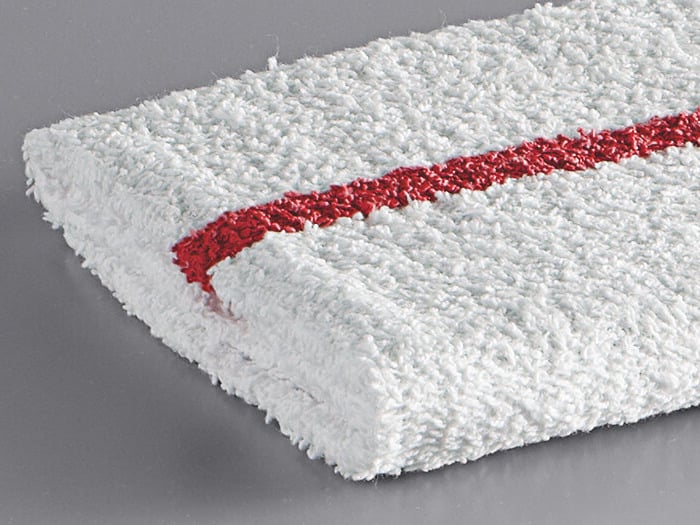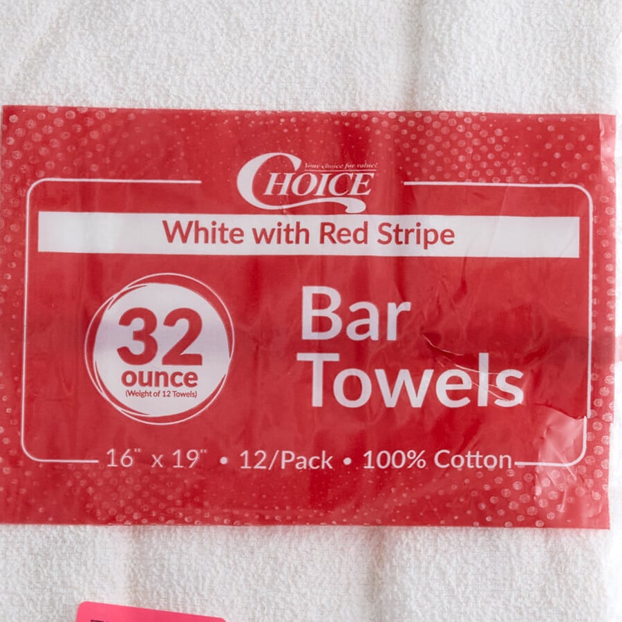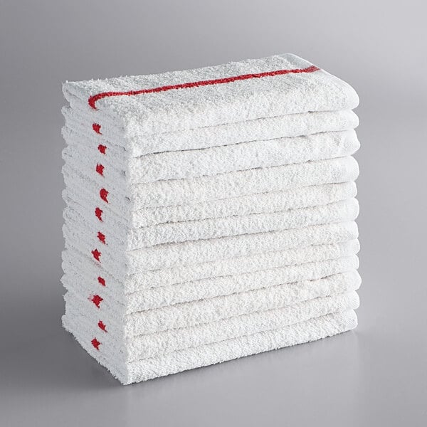Its red stripe allows you to designate it for specific tasks around your business, guaranteeing better sanitary practices in any establishment. As you're tidying up your workspace with this handy bar towel, you can rest assured knowing that its highly distinguishable stripe will help you reduce the risk of cross-contamination.