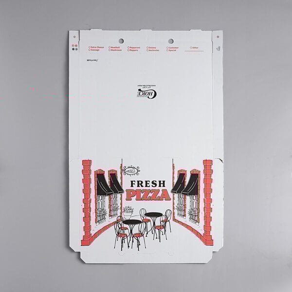 Once your guests have finished eating, this convenient box is recyclable for fast clean up. Plus, it features a convenient ingredient check list on the side, enabling you to mark each pizza's toppings for fast order identification at your pizza parlor, Italian restaurant, or convenience store.