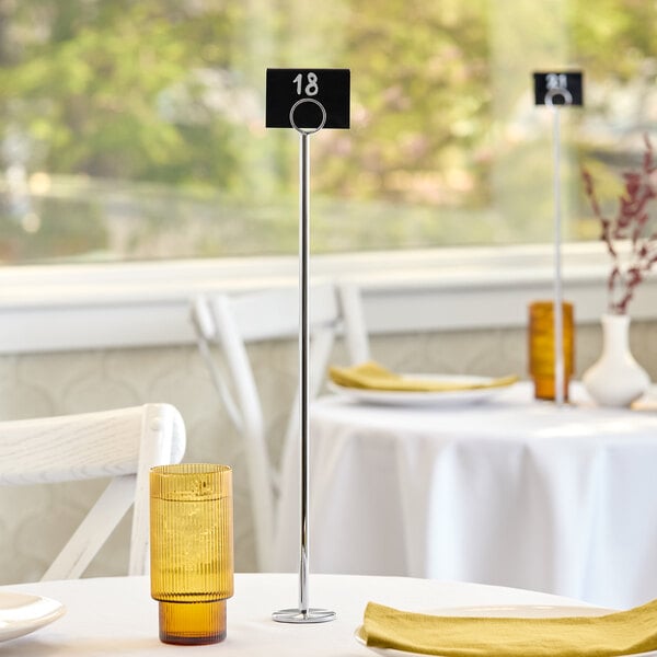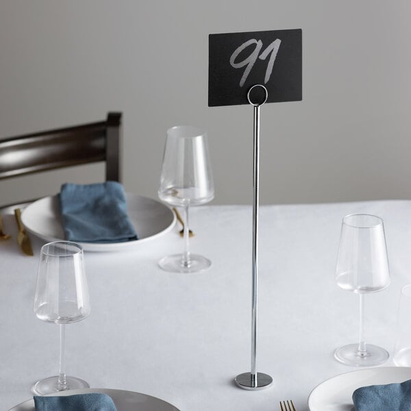 This 8" menu / card holder, is the best one of it's kind that we've own yet. It is heavy, one piece and the ideal height for our waiters to ID from a distance. Easy to clean, great size won't get lost, no smaller parts, just perfect.