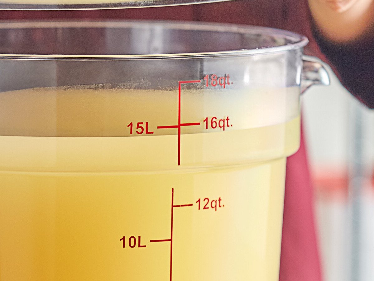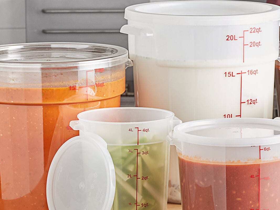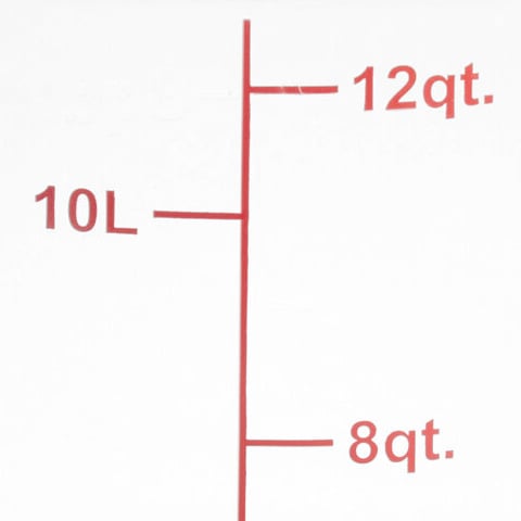 Bold red graduations are printed on the side of the container in both quarts and liters for easy, immediate measuring, saving you time and effort during food preparation. Easily identify and track the date that your food product was made using the reusable "date" indicator at the bottom of the container, or simply adhere a label (sold separately) to the side.