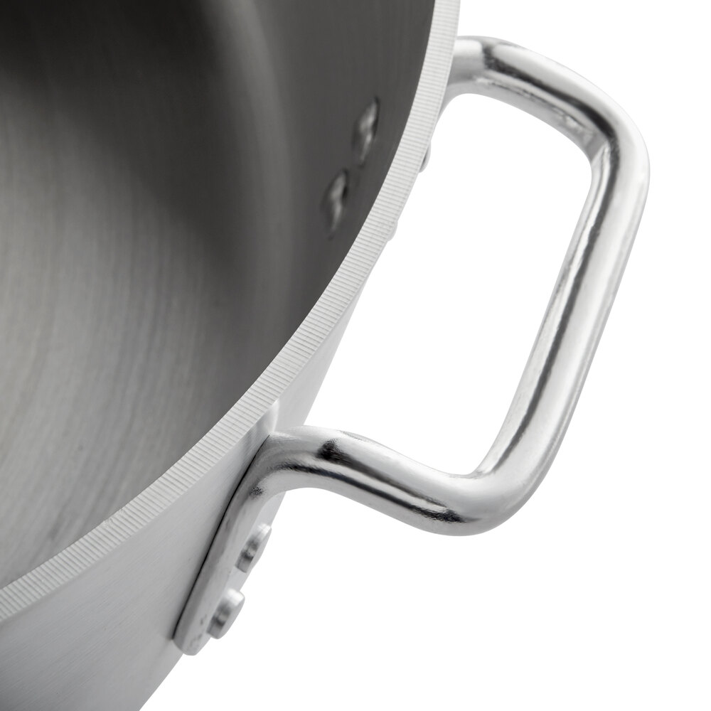 This standard weight aluminum pot's wide heating surface heats quickly and evenly for browning beef and simmering carrots, broccoli, and other fresh produce. It can be used either in the oven or on the stove, making it a versatile staple in any commercial kitchen.