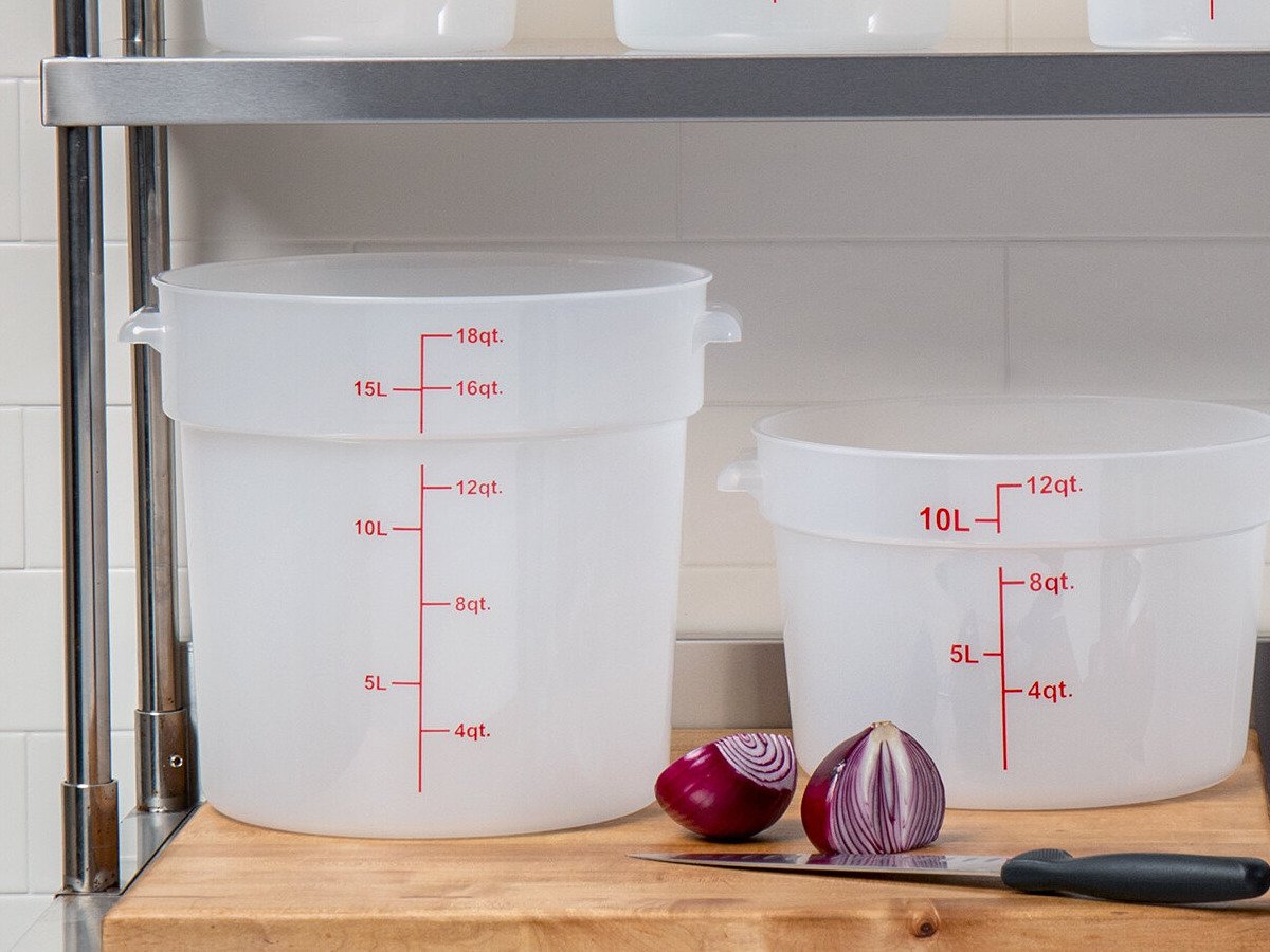 Whether storing dry goods or prepped ingredients, this container is versatile and can handle temperatures ranging from -40 to 160 degrees Fahrenheit, making it ideal for a wide range of kitchen tasks. This Choice translucent round polypropylene food storage container with lid is perfect for restaurants, catering establishments, delis, and cafes that want to enhance their service and streamline their prep organization!