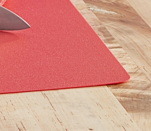 These 20"x 15" cutting boards are thin but very sturdy. They are very big and flexible, so it's easy to cut a large amount of food and then dump it into a pot or container. They are relatively easy to scratch up, but still clean very well even with many marks on them.