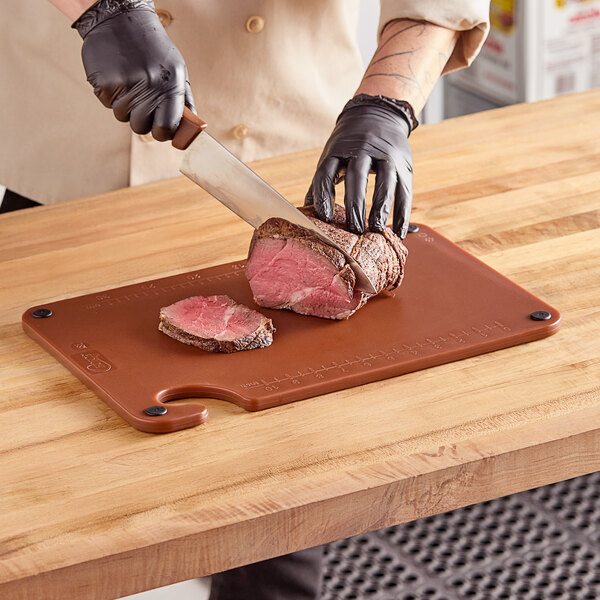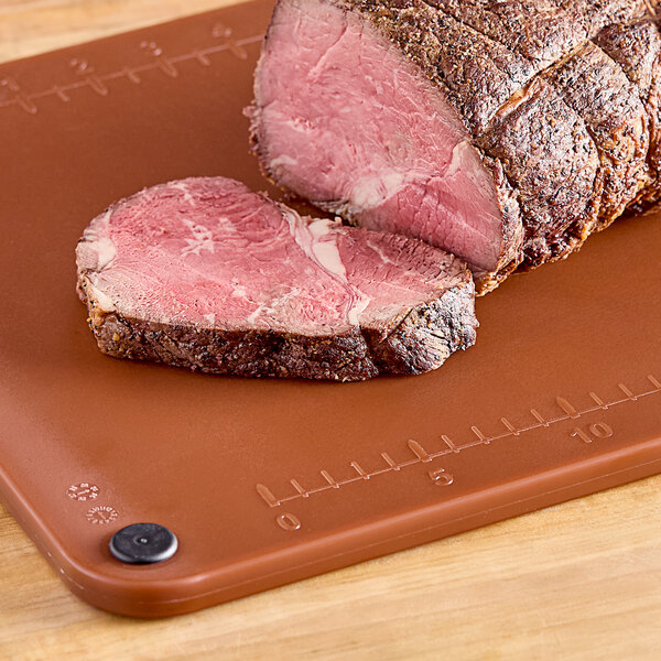 Cleaning the cutting board is simple, saving your staff time and energy. This brown board is intended for cutting cooked meat items at your restaurant, cafe, or catering company!