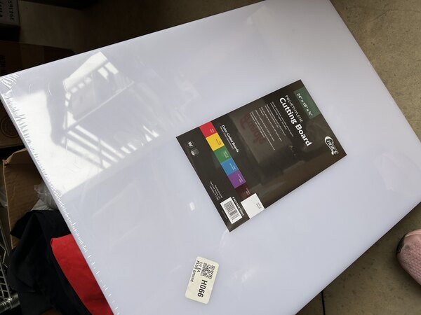 This White Polyethylene Cutting Board is great for many uses, we mostly use it to cut garnishes. It is a little big so it is hard to store sometimes but it is very sturdy. It also gets stained very easily so you do need to spend a lot of time cleaning it.