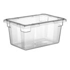 Made of durable polycarbonate plastic, this food storage box resists stains and odors, delivering years of service. Its reinforced corners prevent chipping and warping for optimal strength and longevity while its clear construction provides maximum visibility for quick and easy item identification. For added convenience, it has molded-in handles for simple transportation. Use it to transport supplies and store bulk foods. It can also withstand temperatures from -40 to 212 degrees Fahrenheit, so it will stand up to frozen food products.