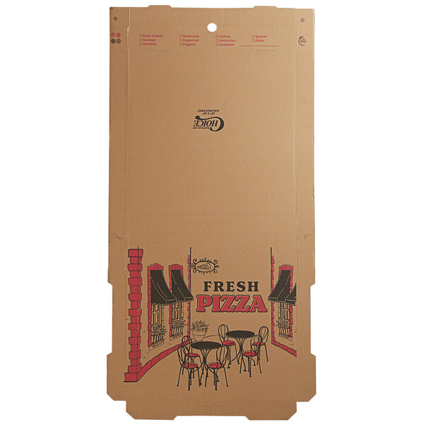 This heavy-duty construction can handle a heavy pizza piled high with several toppings. Featuring an ingredient checklist on the side, this 18" x 18" box enables you to easily mark the pizza's toppings and make customer pick-up a breeze!