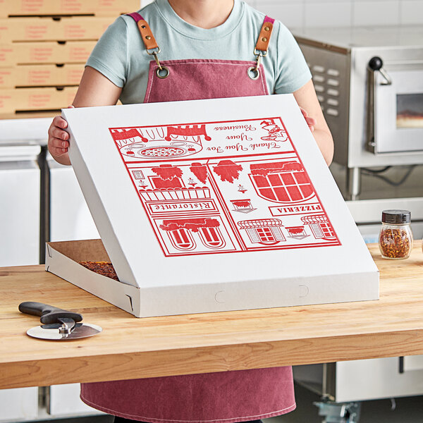 It also includes decorative pizza-themed print and eye-catching graphics. Featuring an ingredient checklist on the side, this box enables you to easily mark the pizza's toppings and make customer pick-up a breeze!