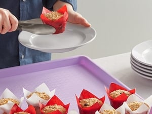 This tray can withstand long-lasting wear and tear, and is strong enough for routine kitchen use. Eliminate the potential for baked items to slide atop the surface to keep your display tidy.