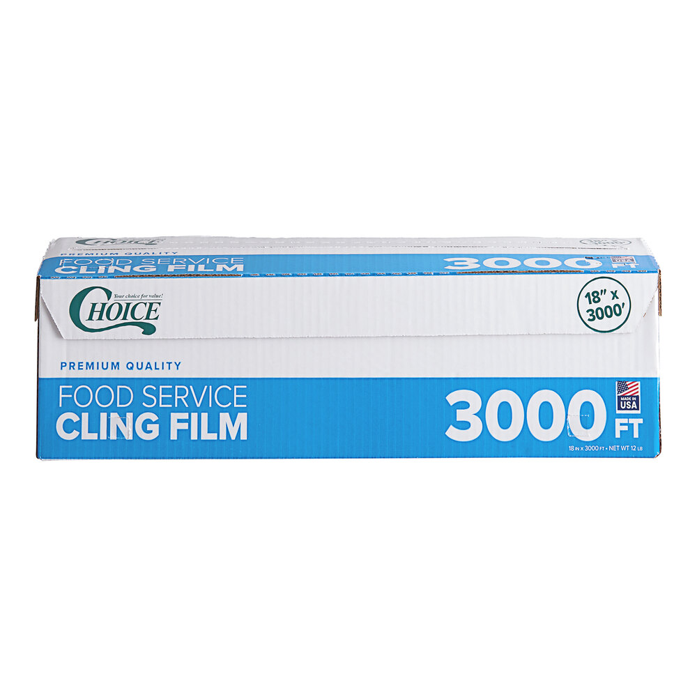 The 18" width is great for covering small and medium containers or bulky food items. With 3,000' of film wrap in every roll you can be sure that your business is in good supply!