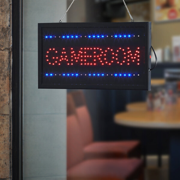To draw customers in, this LED sign features the word "Gameroom" in bright red letters.