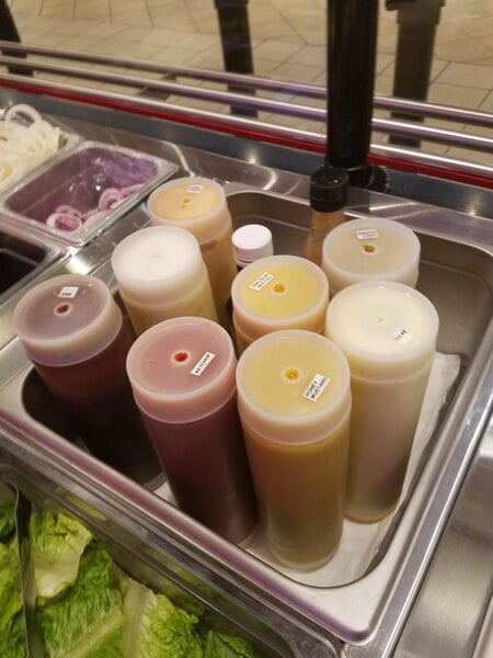 Awesome and metal. Clear is better to see things... but if the kitchen staff is correctly labeling things then metal is the way to go. Plastic just breaks.