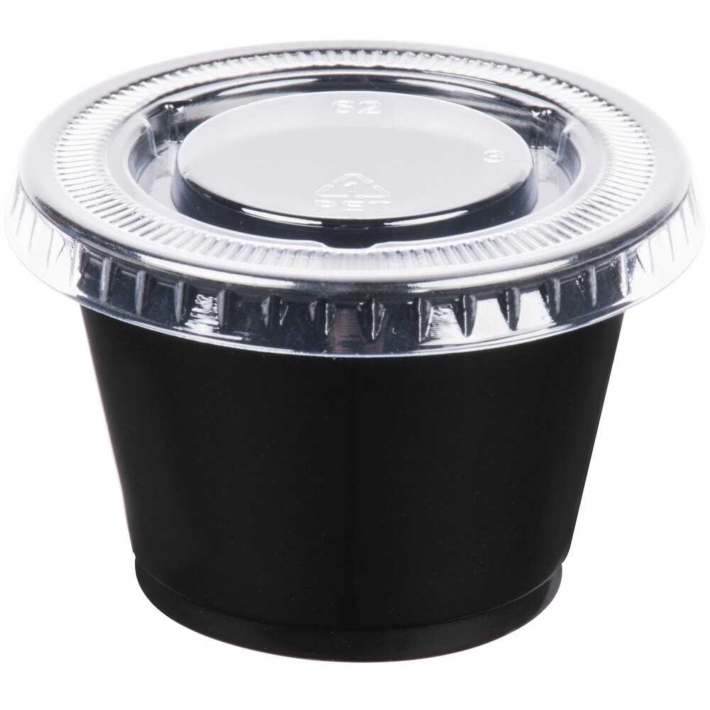 These black 3.25 ounce black souffle cups actually help you cut back on condiment portion control. You would be amazed how much further your condiments stretch just saving .75 ounce per cup. Saves you without customers feeling that they are not getting enough.